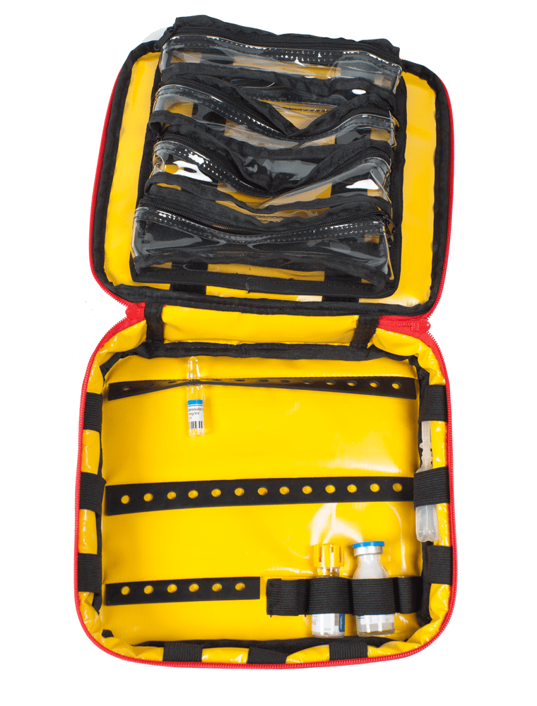 Ampullväskan som gör ditt arbete lättare och effektivare. Du organiserar lätt allt material i väskan som är utformad av sjuksköterskor med lång erfarenhet av hemsjukvård inom både ASIH och vårdcentral. Till skillnad från andra liknande väskor på marknaden kan du skilja en del av innehållet från ampullerna, vilket gör det lätt att torka ur väskan utan att material kontamineras. Allt material hålls ordentligt på plats i respektive fack och väskans styva uppbyggnad skyddar effektivt ampullerna från att krossas. Ampullväskan passar perfekt i ytterfacket på hemsjukvårdsryggsäcken.