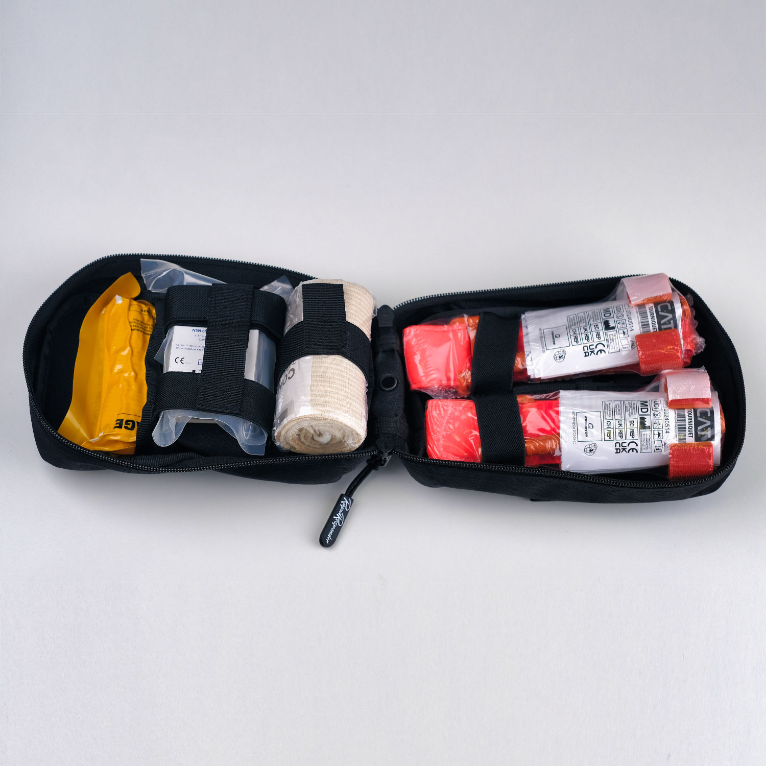 Väskan är också idealisk för polis, väktare och säkerhetspersonal som behöver ett tillförlitligt kit för blödningskontroll. Väskan kan bäras smidigt i bältet eller fästas på annan utrustning med MOLLE-system.