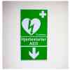 Riktningsvisande pil, visar i vilken riktning hjärtstartaren sitter uppsatt. Dubbelhäftande baksida, lätt att montera.