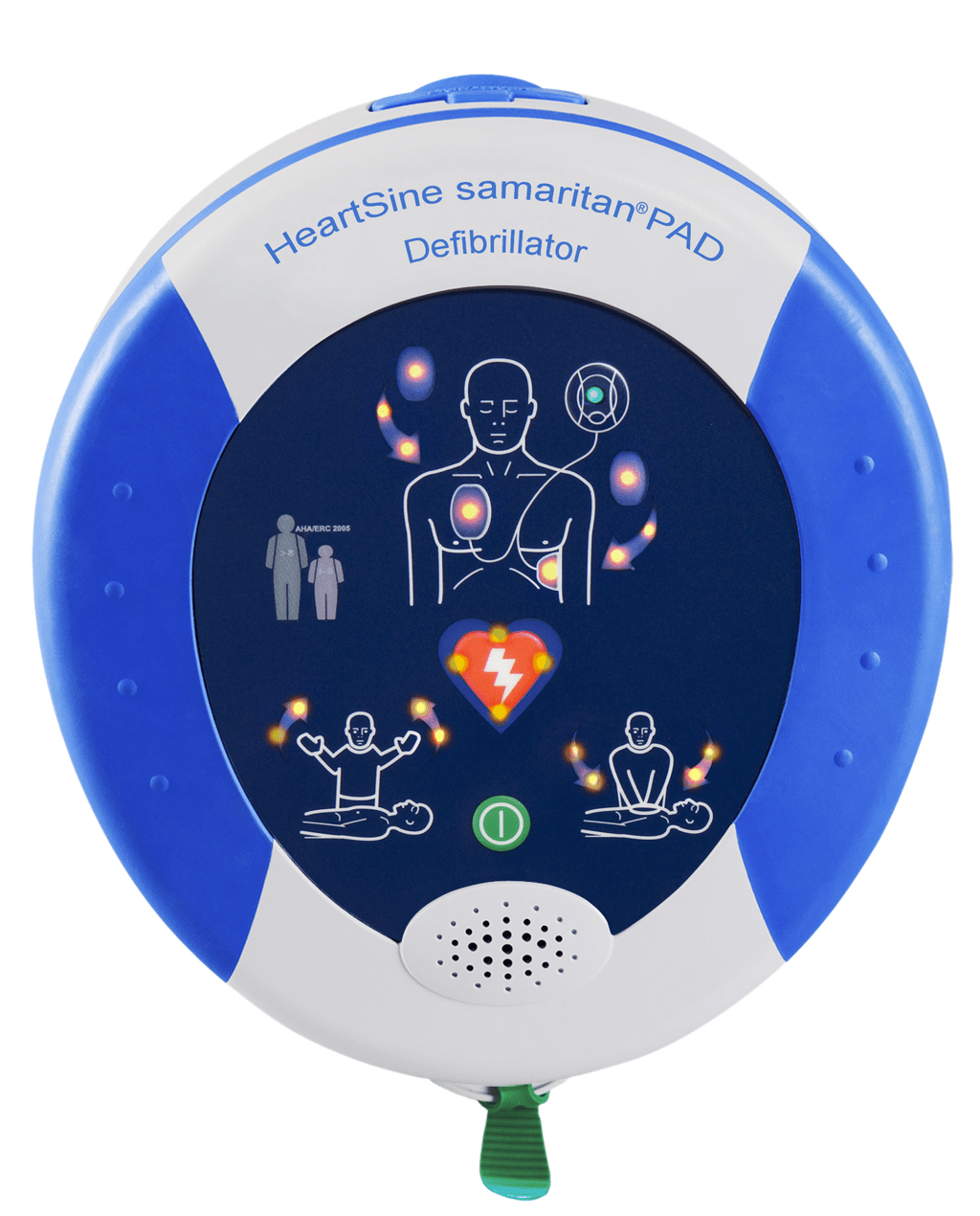 PAD 350P är lätt, smidig och vattentålig. Tydliga symboler och röstvägledning guidar användaren genom hela förloppet. Tydliga symboler blinkar på hjärtstartaren för att visa vad du ska göra, perfekt i stökiga miljöer där hjärtstartaren är svår att höra. Batteri och elektroder är i samma paket, vilket gör byte av elektroder och batteri enkelt. Det går dock inte att byta endast elektroder. Bärväska och nödkit med sax, pocketmask, handskar, och handduk ingår när du köper PAD 350p från oss.